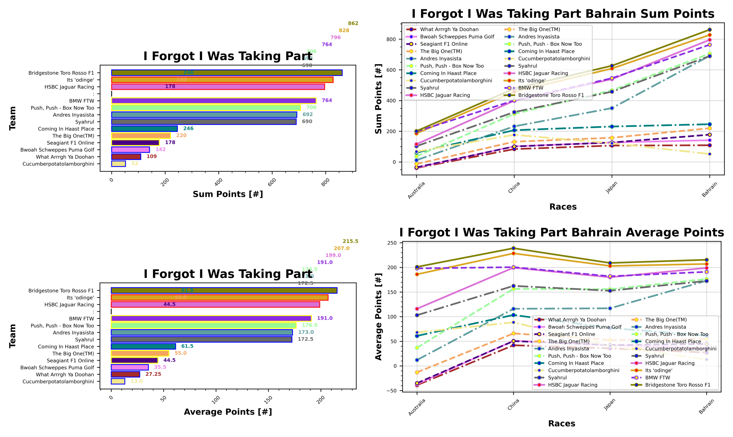 Alfie holds on to their lead at the top with I Call Patrick Subaru, now sitting clear with 948 points ahead of Sebastian and Bridgestone Toro Rosso F1 with 862 points. Val is in third place with Its “odinge” coming in at 828 points ahead of Josh in fourth with HSBC Jaguar Racing and 796 points. Phil rounds out the top five with BMW FTW, sitting on 764 points.