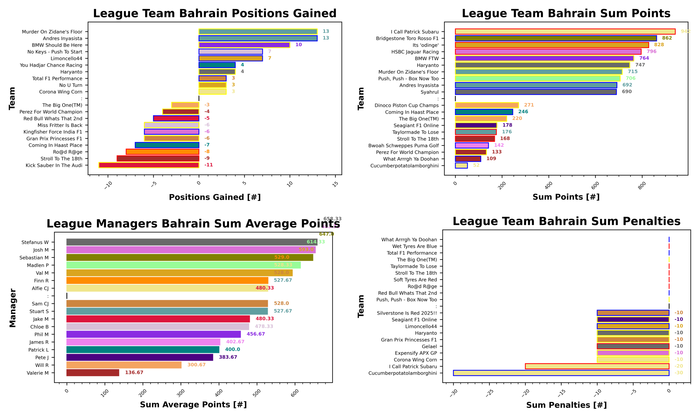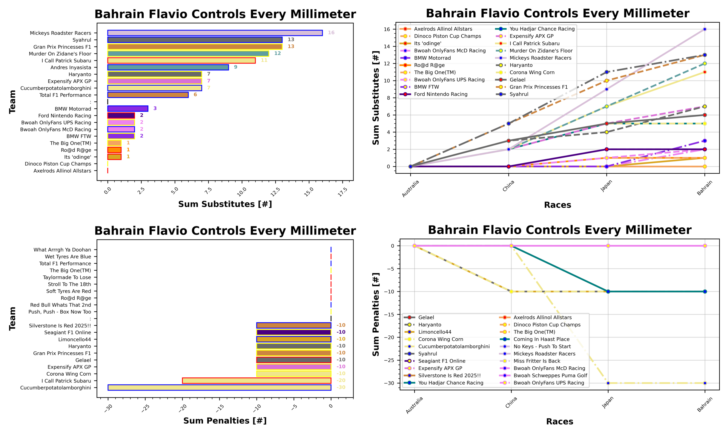 Leading the substitutions award at the moment is Chloe and Mickeys Roadster Racers with 16 substitutes so far, ahead of Stefanus and Syahrul with 13, tied with Sam and Gran Prix Princesses F1, and Stuart in third with Murder On Zidane’s Floor with 12 subs. None of these teams have yet hit the penalties limit.