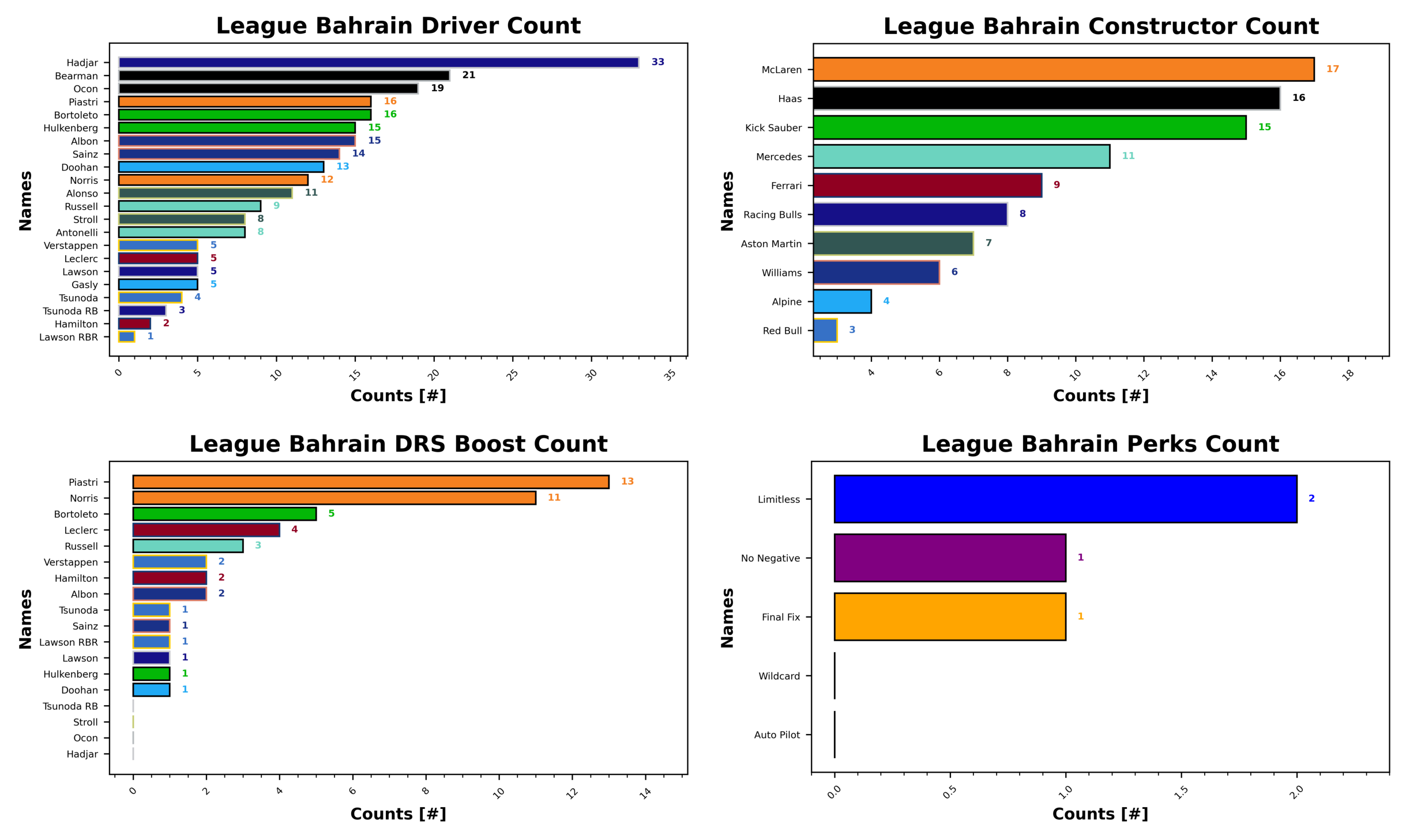 sabah alkhayr ya mudirin and welcome to the race report for the 2025 Formula 1 Bahrain Grand Prix, and the Fantasy League report, of course. The Bahrain Grand Prix is now one of the oldest circuits on the calendar, first hosting a Grand Prix in 2004, and more importantly never being resurfaced. Which means the road surface is older than some of the drivers on the grid, yep that’s quite a staggering statistic. The Bahrain Grand Prix has recently hosted the opening round, and preseason testing, for many years, but has been moved to later in the year this year to accommodate a bigger push for environmental travel and Ramadan. We have seen some absolute classic races in Bahrain, even in the more recent wide-cars era of F1. Who can forget Lewis vs Max in 2021, the race that set the scene for that entire season. And of course, the next year in 2022 with Max vs Charles, the two trading overtakes into turn 1 throughout most of the race. As they like to show in the opening credits, turn 1 was also the location of the Gutierrez and Maldonado crash, with the Mexican driver completing the full 360 flip over the front wheel of Maldonado’s Lotus. Bahrain, most importantly, is a wide circuit with a good variety of fast corners and hard braking zones, allowing cars to follow, overtake, and run side-by-side in many areas of the circuit, so we were expecting a good race. Let’s get into it.