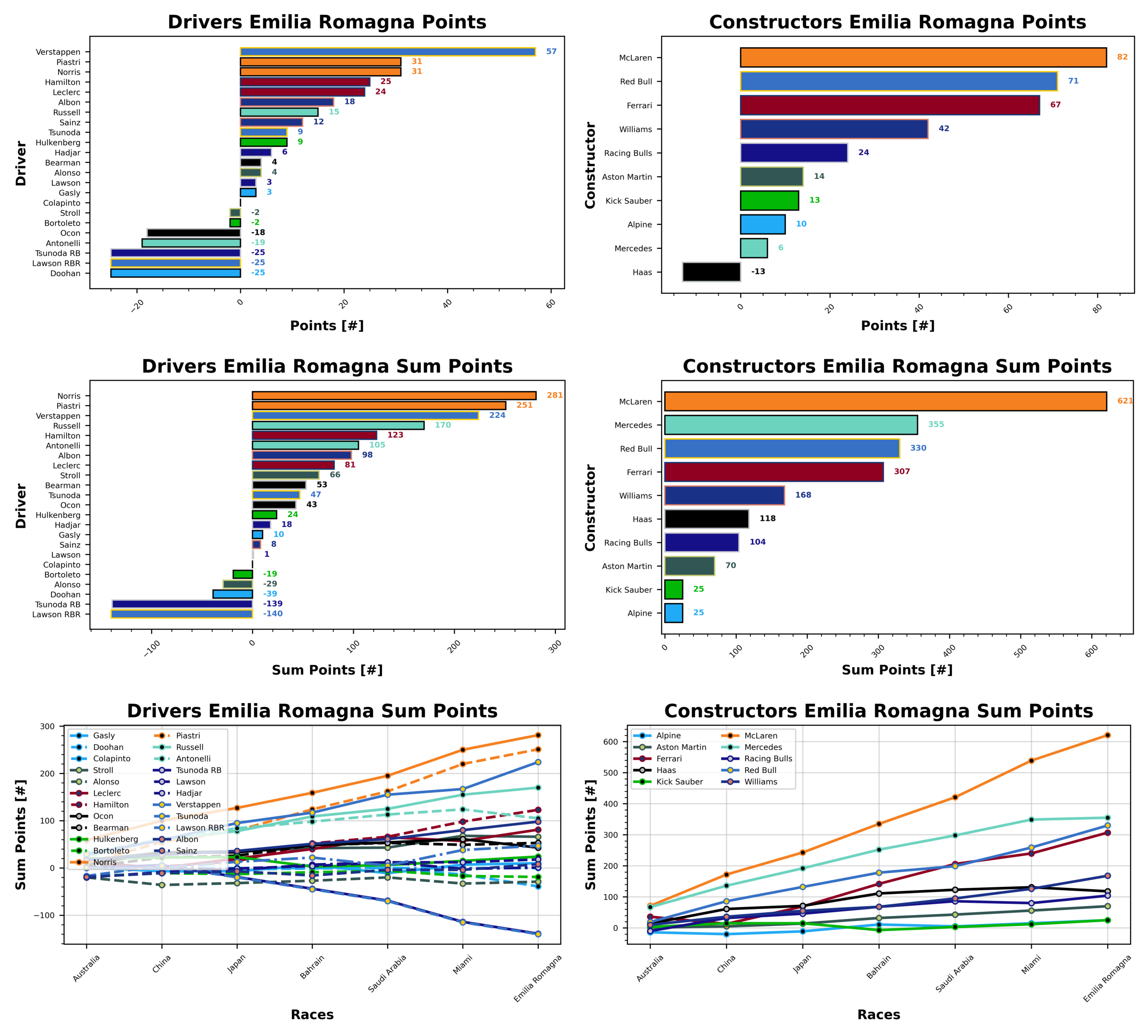 Aside from the gain in points, it’s as it was last time out for the two McLarens, Lando still leads with 281 and Piastri is in second with 251, the pair scoring equally means that gap doesn’t change. However, Max Verstappen is catching, and he is in third place with 224 points. George Russell sits in fourth with 170 points, ahead of former teammate Lewis Hamilton with 123 points. Fernando Alonso continues to dwell at the bottom of the table, the Spaniard scoring positively this week, but not enough to bring him into positive points, he sits on -29. Gabriel Bortoleto joins him down there with -19 points, followed by Colapinto with 0. Liam Lawson is next, with his solitary point, behind Carlos Sainz who finally makes it out of the negatives with 8 points.