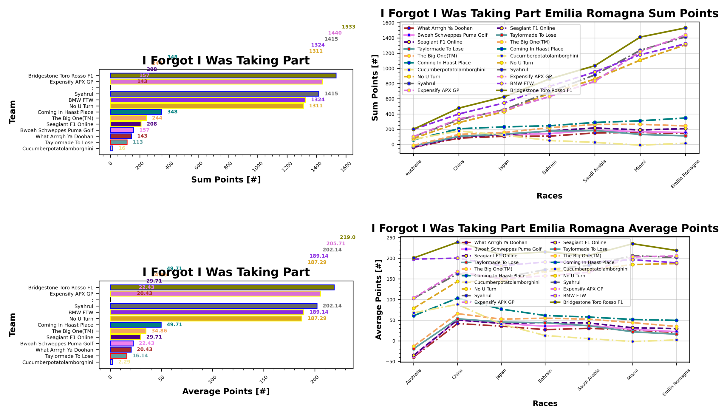 It’s getting very close at the top now, Alfie and I Call Patrick Subaru hold on to that top step with 1552 points, but Sebastian and Bridgestone Toro Rosso F1 are not far behind with 1533 in second. Stefanus makes the jump up to third this week with their team Haryanto sitting on 1446, ahead of Josh and Expensify APX GP with 1440. Stefanus rounds out the top five with Syahrul and 1415 points. Alfie is still leading in the Golf League but their team cucumberpotatolamborghini is now back in the black with 16 points. Stuart is in second with Taylormade To Lose and 113 points ahead of Valerie with What Arrrgh Ya Doohan and 143 points. James is in fourth with Bwoah Schweppes Puma Golf and 157 points, and Valerie rounds out the bottom five with Perez For World Champion on 170 points.