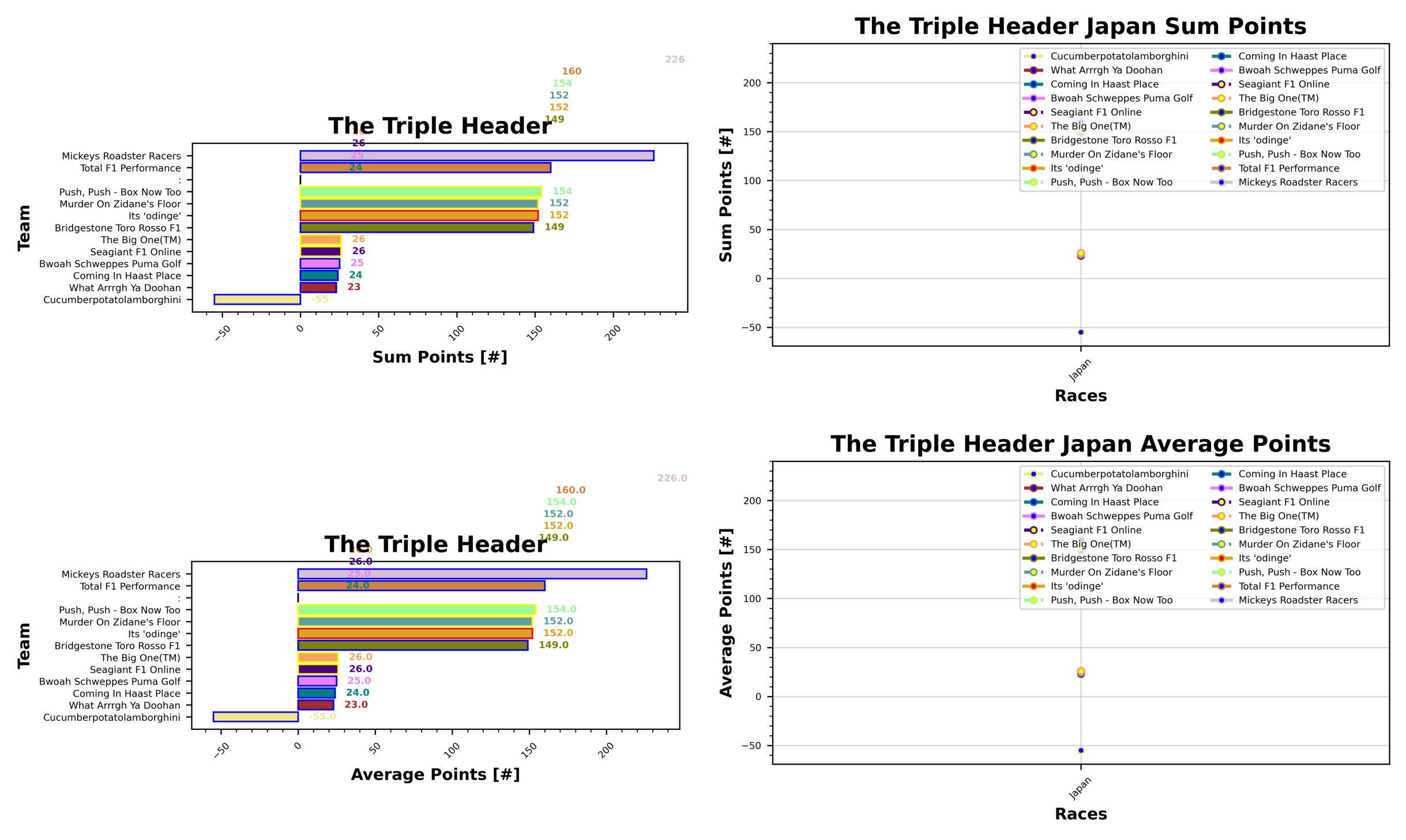 First week we can report on some triple header competition. It’s obviously the same order as Japan for now, but all to change in the next weeks. Alfie and I Call Patrick Subaru lead froM Chloe and Mickeys Roadster Racers, and Alfie and Corona Wing Corn, with the three sitting on 275, 226, and 163 points so far.