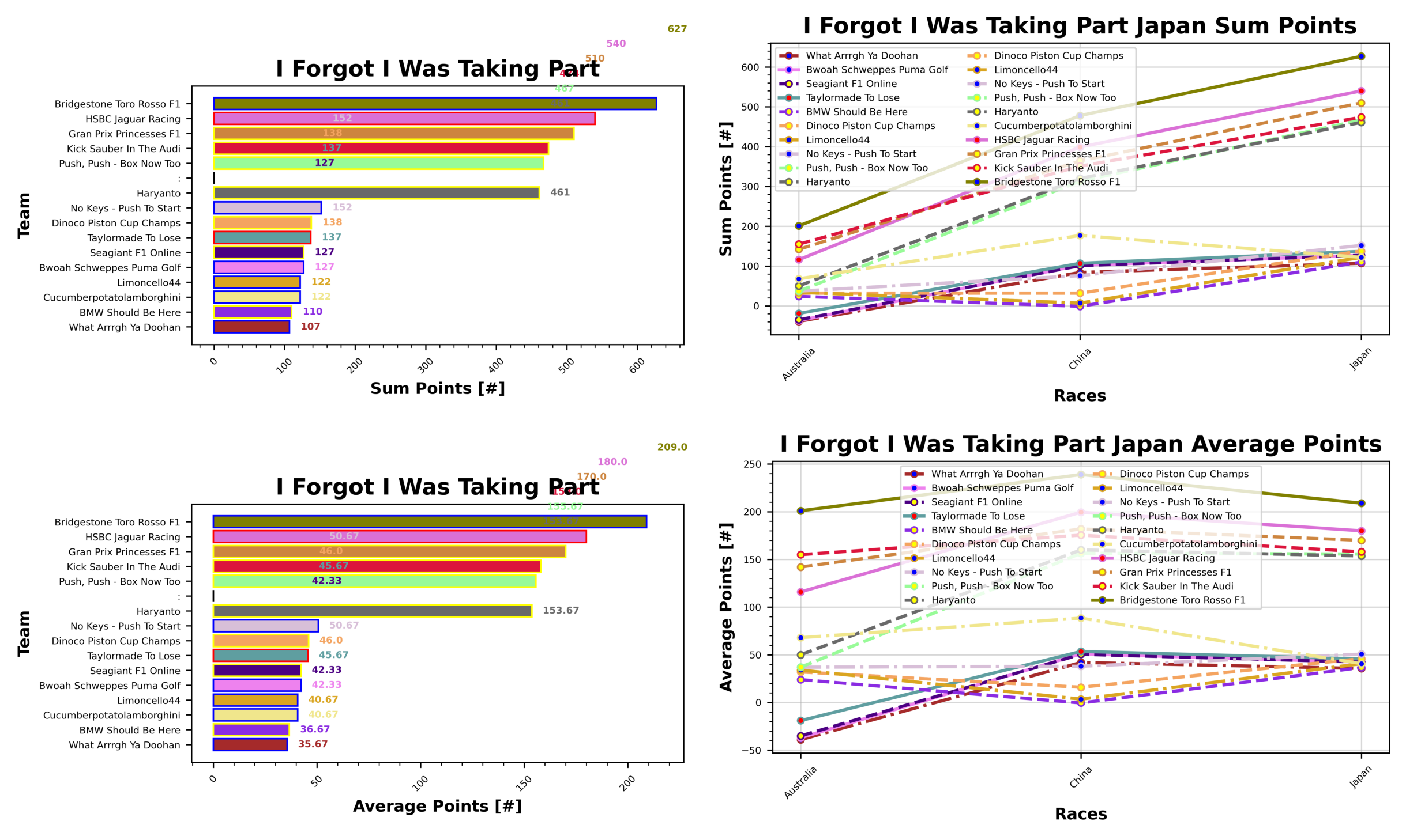 Similarly, I Forgot I Was Taking Part will match up with the current championship standings, these are Alfie with I Call Patrick Subaru (697), Sebastian with Bridgestone Toro Rosso F1 (627), and Val with Its ‘odinge (609) currently.
