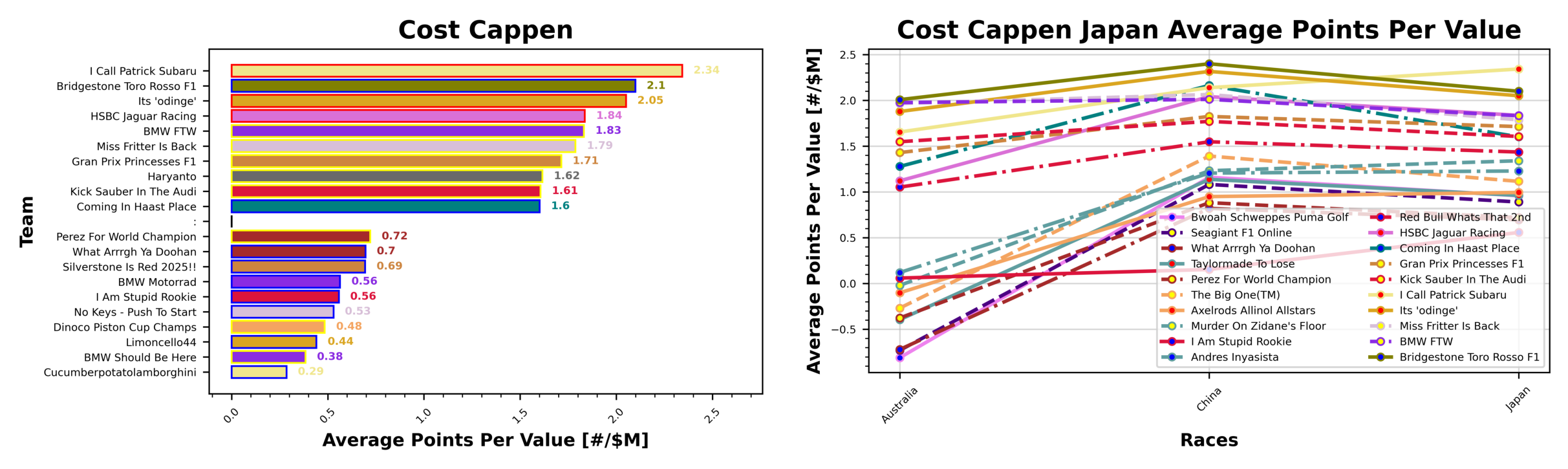 | Cost Cappen | 5 | Highest average points per value at the end of the season |