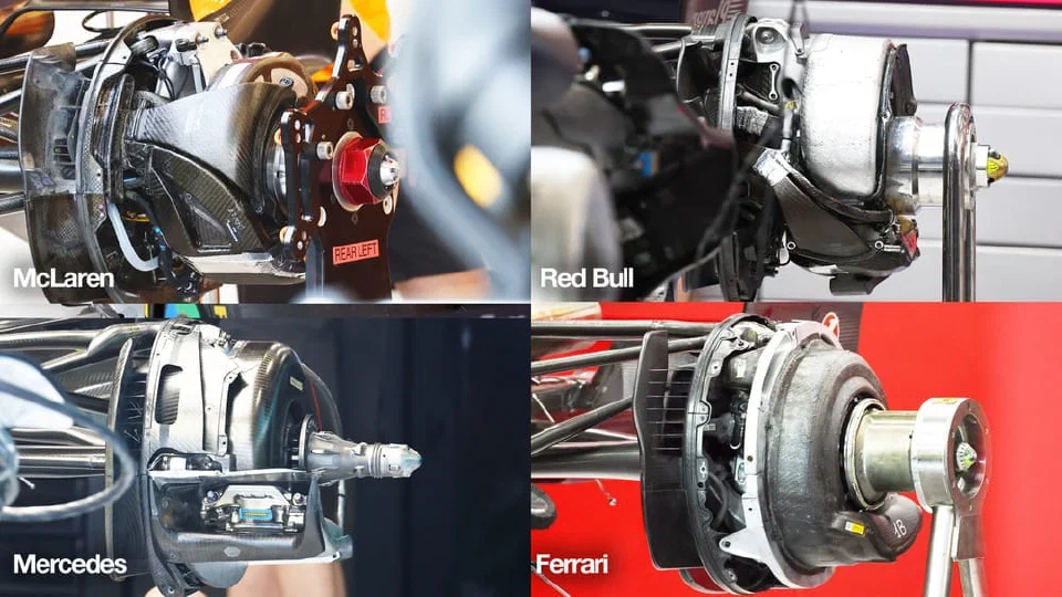 In the relentless pursuit of performance, F1 teams employ a myriad of clever solutions to effectively isolate the intense heat generated by the brake discs and channel it away from the rear of the car, thus preventing the wheel rims and, crucially, the tyres from overheating. A close examination of the rear brake setups across the grid reveals that McLaren’s approach appears to be particularly intricate in its execution. While some teams opt for designs that leave elements more exposed to aid cooling, McLaren seems to have aggressively enclosed their brake components – likely utilising ceramic-lined carbon fibre to enhance heat insulation. While a detailed analysis of McLaren’s specific brake disc design is beyond the scope here (and best left to dedicated technical experts), the visual evidence suggests a highly focused approach to heat management.