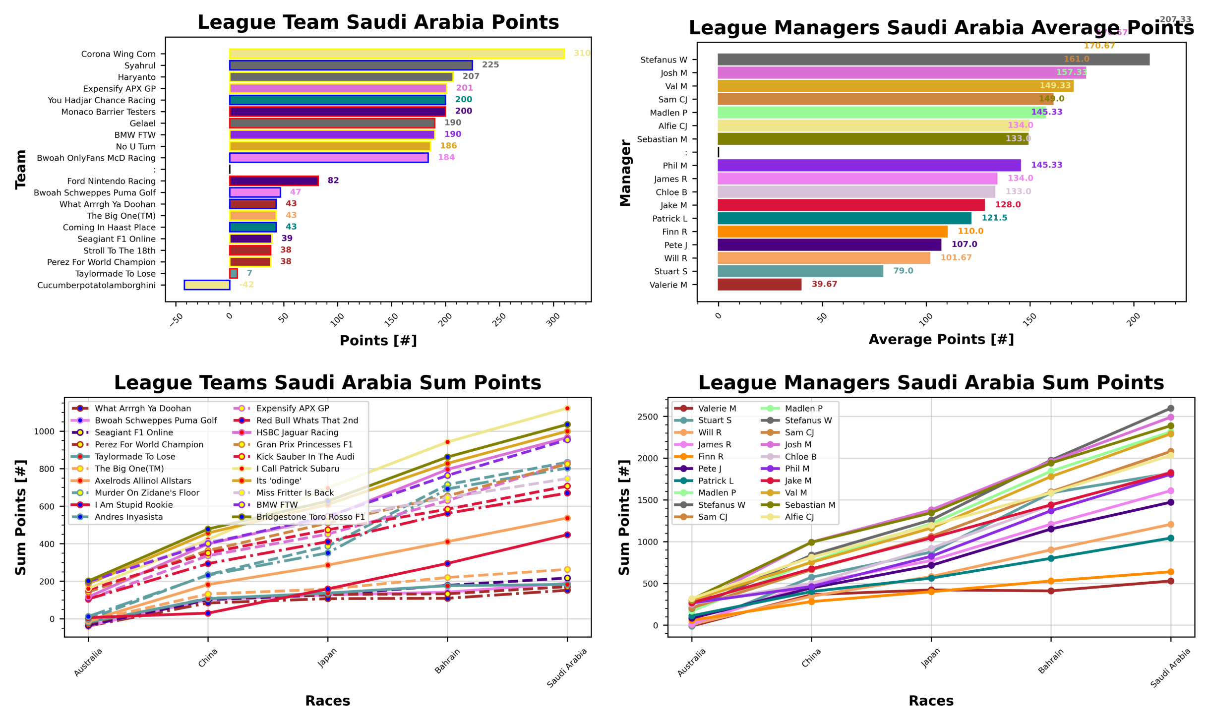 Our weekly winner from Saudi Arabia is rookie manager Alfie and Corona Wing Corn with 310 points thanks to a well timed limitless token. They’re followed by Stefanus who makes a return towards the top with Syahrul and Haryanto in second and third with 225 points and 207 points. In fourth place it’s Josh with Expensify APX GP with 201 points. Rounding out the top five this week we have Patrick and Pete, with their teams You Hadjar Chance Racing and Monaco Barrier Testers both pulling in 200 points.