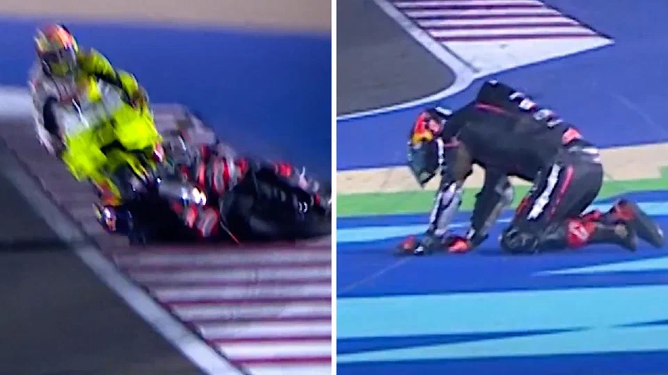 Ok, so that sounds pretty nasty right? But these are professional motorbike racers, they crash all the time, they have access to the best medical establishments and procedures, so it shouldn’t have taken that long right? Right. By April 2025, when the MotoGP circus arrived in Qatar, Martin was back on his 2025 Aprilia. The aim of the weekend was to get as much track time as possible, get to grips with the bike, and prove he was still fit enough to ride. That wasn’t quite what happened. On lap 14, Martin crashed in the fast final sector of the track when he was hit by the approaching Fabio Di Giannantonio in a horrific incident.